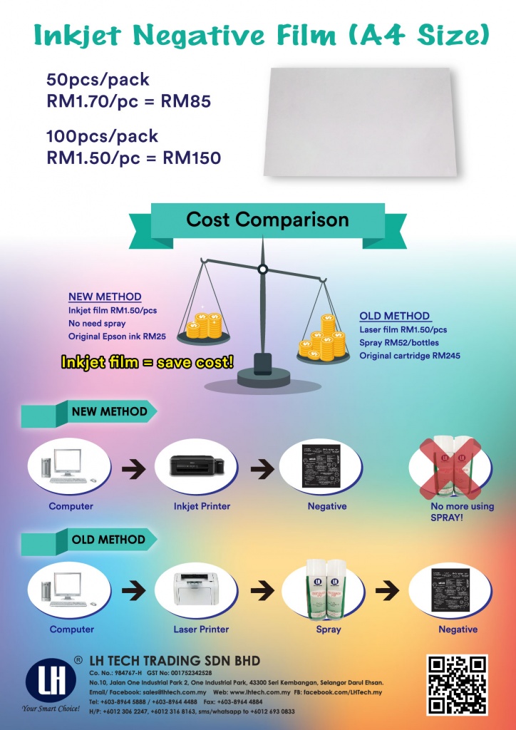 With inkjet negative film printing method, the rubber stamp maker do not need to spray high density spray to darken the negative anymore. As a result, it helps to increase the productivity and lower the cost of production! Learn More