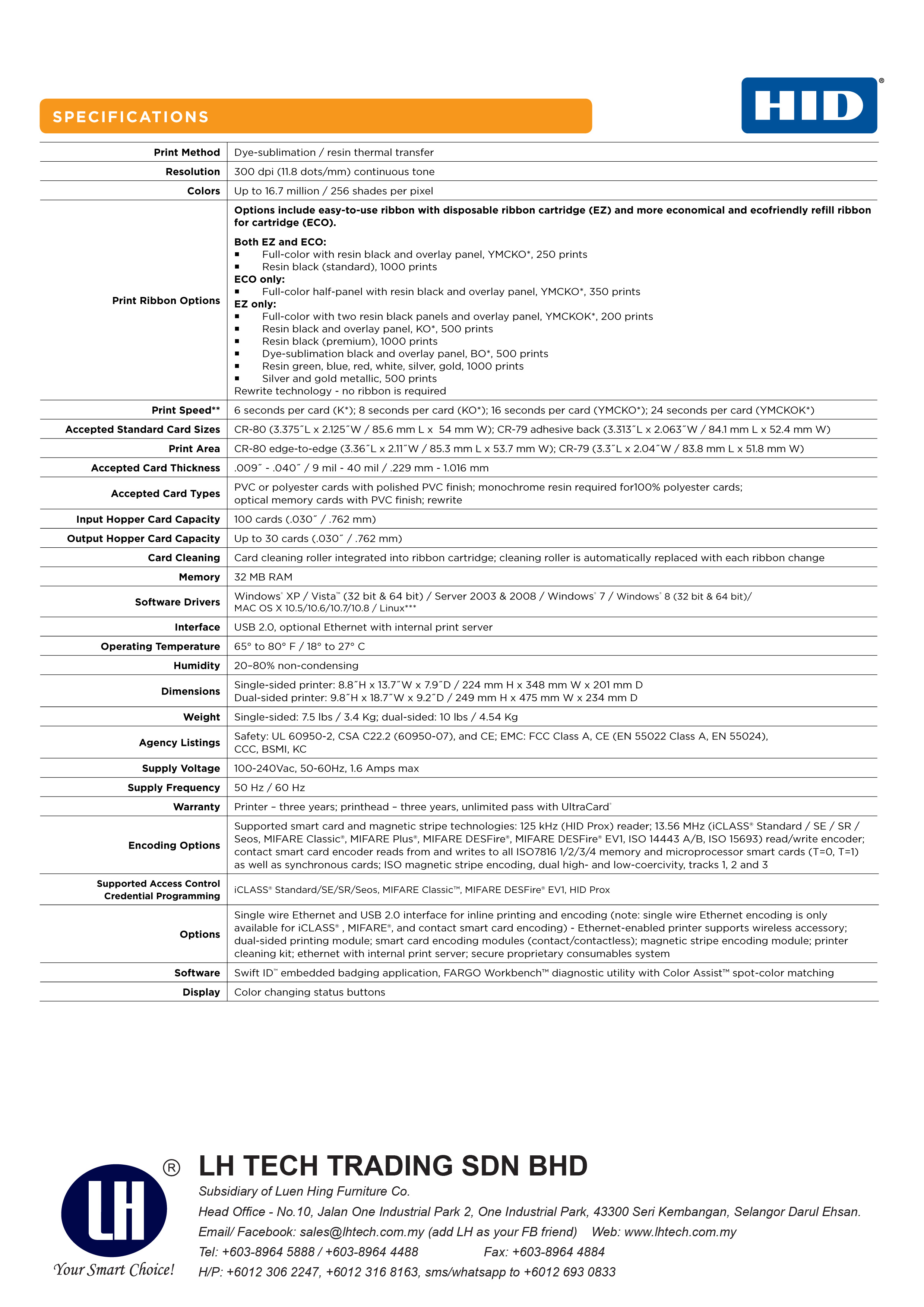 Fargo DTC 1250E ID Card Machine is the ideal card printing solution for small businesses, schools, and local governments, the HID® FARGO® DTC1250e ID card printer and encoder is the fastest printer in its class, allowing you to produce 50% more visually-rich, full-color credentials in the same amount of time. Its small, compact footprint makes it easy to use in a variety of office environments and can be easily upgraded to include an embedded iCLASS SE® encoder (part of the iCLASS SE platform), enabling you to produce secure, personalized membership and loyalty photo ID cards in one single, seamless step. An optional Wi-Fi® accessory is also available to help you print anytime, anywhere.